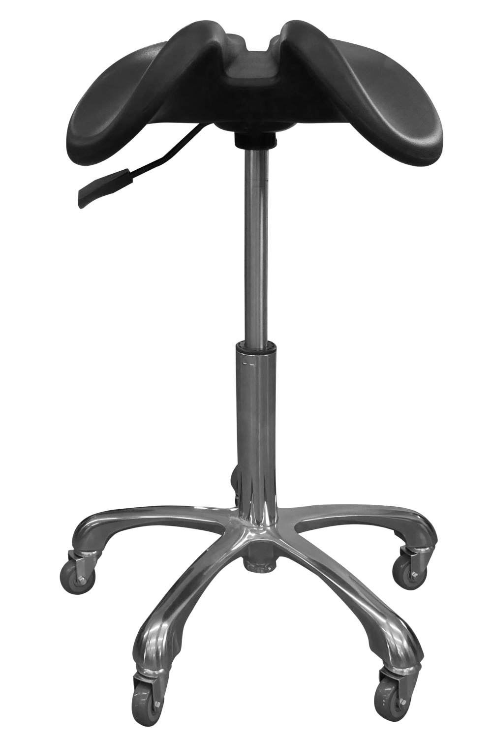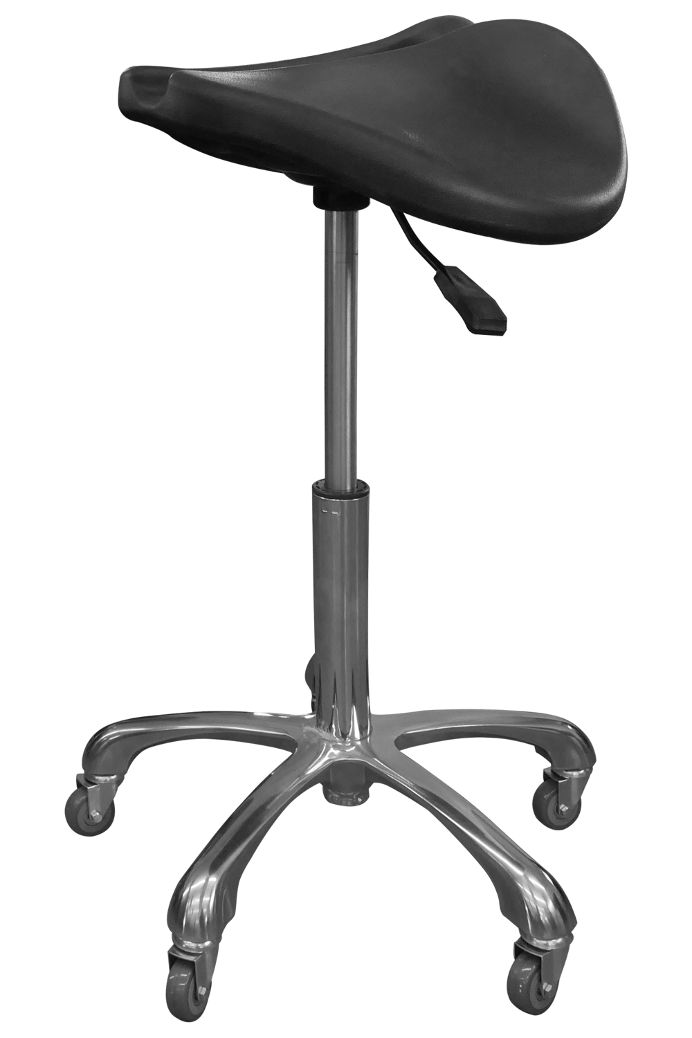 Perfeita ergonomia para o profissional que trabalha na posição à frente de seu cliente, ou seja, na posição de execução de tratamento. Possui ajuste de altura à gás e rodízios de alta resistência. Sua estrutura cromada garante durabilidade, requinte e beleza.
